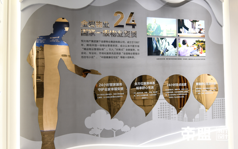 恒大潘安湖生态小镇工法馆是帝盟为恒大打造的精品工法间之一,着重展示项目的材质、施工工艺、智慧系统等,让参观者感受未来家园的氛围。工法馆以金色色调为主,以浅紫色灯光映衬,高雅而不沉闷,点缀以山水设计元素,令整个空间精彩又灵动。